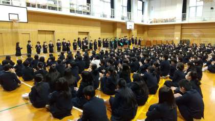 今日は、2学期の終業式。みんなが心を引き締めて式に臨みました。
