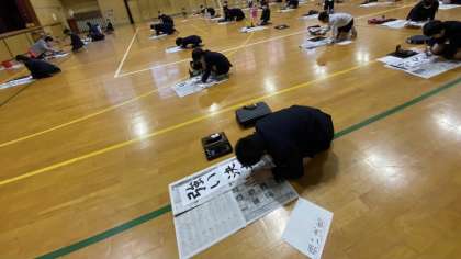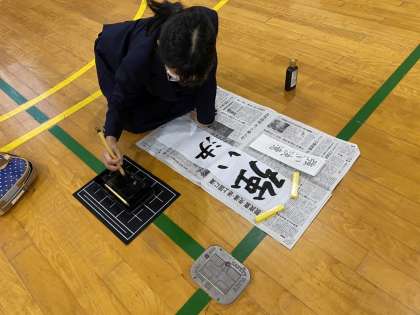 広い場所でゆったりと新年の雰囲気を味わいながら、「強い決意」という言葉を3枚の半紙に思いをこめて一生懸命書くことができました。こんなふうにしたい、もっとこうしたいと、それぞれに向上心をもって取り組む姿も見られました。