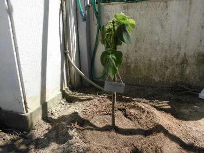 運動場南側の生垣に、桐の木を植えました。