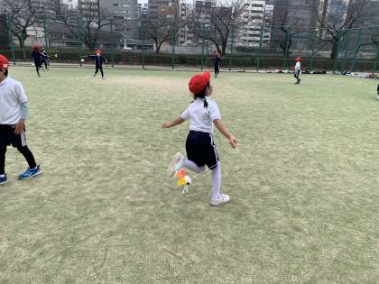 生活科で作った、紙コップの風車を第二運動場で回して遊びました。