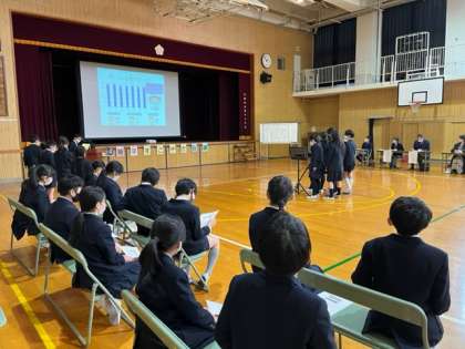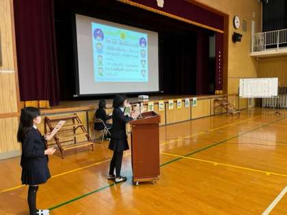 今日は、1年に1度の開平すこやか会議を実施しました。昨年度はteamsを使って児童のみで行いましたが、今年度は体育館からのライブ配信。「感染症を予防しよう〜2年間の取り組みをふりかえって〜」というテーマのもと、保健?運動?給食の各委員会が、これまでの取り組みやアンケート結果について発表し、学校医、学校薬剤師の先生方と、PTA役員の方々にも参加していただいて行いました。