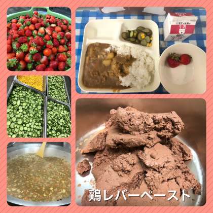 鶏レバーペーストのカレーライスは、子ども達がどのような反応をするのか心配でしたが、「臭みがなかった。」「何か新しいスパイスが入ったカレーなの?深い味がする。」と予想外に好評でした。いちごも甘く、おいしく食べていました。