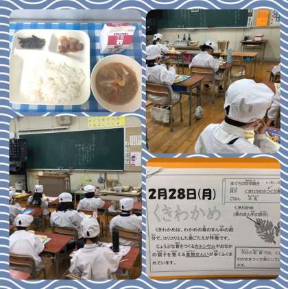 今日の給食の感想を聞いてみると、高学年の人に特に茎わかめは人気があり、「コリコリとしていておいしかった!!」という声を聞くことができました。