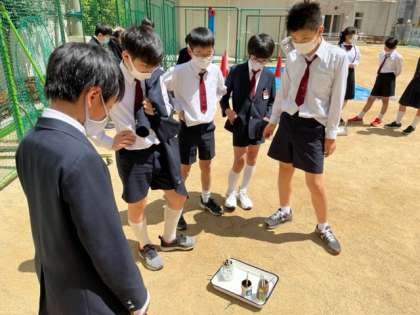 その後、運動場に出て、条件を変えながら実験を行いました。