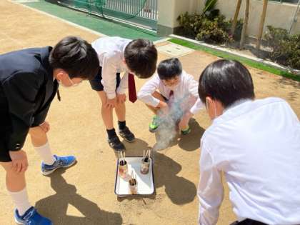 6年生の理科では、ものが燃えるしくみについて学習しています。身の回りの物で、燃える物と燃えない物を考えることを通して、燃えるための条件を見つけ出していきました。