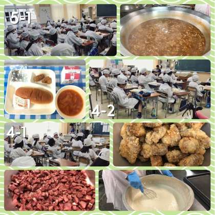 今日の給食は、一口トンカツ、ミネストローネ、ミニフィッシュ、コッペパン、アプリコットジャム、牛乳です。一口トンカツは、給食室で手作りしています。豚肉に塩や料理用ワインで下味をつけ、小麦粉と水を混ぜ合わせた衣とパン粉をつけて油で揚げます。ミネストローネは、具沢山のスープです。トマト缶やトマトピューレが入っています。今日もどのクラスもよく食べ、「おいしかったです。」と伝えてくれました。
