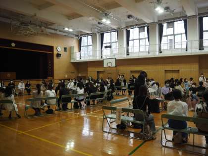 今年度は、3年ぶりにPTA予算総会や常置委員会を開き、非常時に備えた引き渡し訓練も実施しました。体育館と開平ホールを映像で結んだPTA予算総会や常置委員会、運動場と開平オアシスを使った引き渡し訓練と、新設された場所を大いに活用することができました。