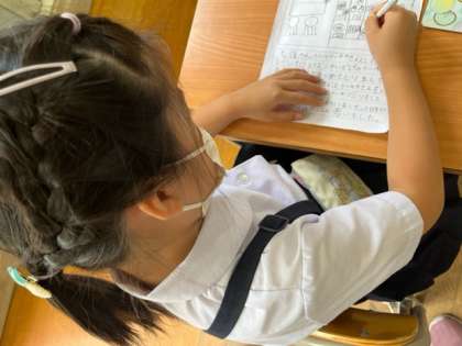 帰校後は、目と耳と心に焼き付けてきたことを、生活科カードに絵と文でかき記すことができました。