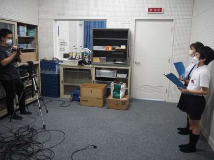 はじめの会は、テレビ放送で行いました。運営委員会が司会やあいさつ、ルール説明を担い、進めています。