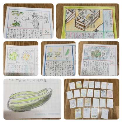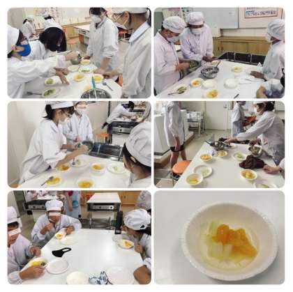 7月13日に6年生が玉造黒門越瓜を使って、甘酢あえとフルーツポンチの調理実習をしました。玉造黒門越瓜は、本校で毎年栽培しており、本校の地域とも深いつながりのあるなにわの伝統野菜です。初めての食材にうまくできるかなぁとただでさえ不安があるのに、甘酢あえは、シャキシャキとした歯ごたえを残すために、皮をむかずに薄切りにして塩ゆで、フルーツポンチは、みつの味をしみこませるために、皮をむいてサイコロ状に切り、みつと一緒に煮るなど、2品の作り方が全く違うので、6年生にとっては難しく、段取りを考えて、頭がいっぱいになりながら緊張して取り組んでいました。食べてみての感想は、「甘酢あえは酸っぱいけど、シャキシャキとしておいしい。」「フルーツポンチが甘くて、みかんやパイナップルとよく合っていた。」など、上手にできあがり、おいしく食べていました。調理実習を終えて、はがき新聞に感想を書きました。「こんな体験がなければ、玉造黒門越瓜を知らないままだったと思う。」「玉造稲荷神社の宮司さんに歴史を教えていただいたり、調理実習をすることができてよかった。」「クラスのみんなで楽しく調理実習ができたことがうれしかった。」という感想がありました。6年生が班ごとに役割分担をして、助け合いながら2品を仕上げていく姿、それぞれが多くのことを感じて感想を書いている姿などを見て、玉造黒門越瓜についての取り組みができて本当によかったと思いました。