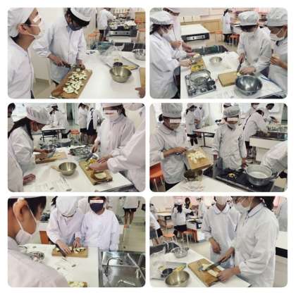 調理実習1が6年1組の様子、調理実習2が6年2組の様子です。