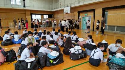 いよいよ今日から2泊3日の宿泊学習です。ハチ高原で魚つかみや山登り、カレーづくり、キャンプファイヤー等、普段できないことを体験して来ます。みんなで協力して過ごす3日間、楽しんできます。では、出発!