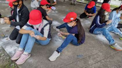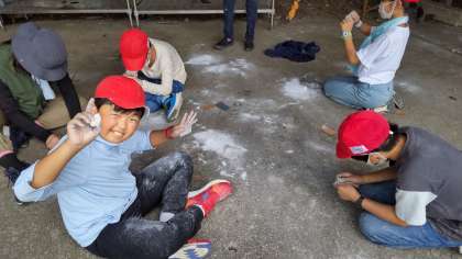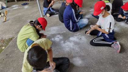 子どもたちは自分だけの勾玉づくりに挑戦です。