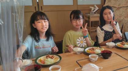 晩御飯は唐揚げでした。美味しいと言う声がたくさん聞かれました。みんなでの生活が楽しくなり、もう終わりかと思うと寂しいと言っています。2日間の振り返りも活動班ごとにしました。