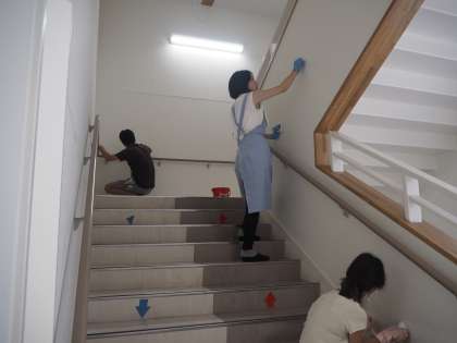 2学期の初日にあたって、PTAの方々が清掃活動を行ってくださいました。西校舎の壁とトイレを重点的に掃除していただき、見違えるように美しくなりました。その様子を見ていた子どもたちからは、「ありがとうございます!」と大きなお礼の言葉とともに、「一緒にやりたい!」という声が聞かれました。