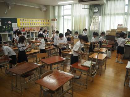 3時間目は、子どもたちの掃除タイム。2学期も気持ちよく過ごせるように、みんなできれいに掃除をしました。