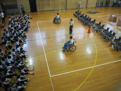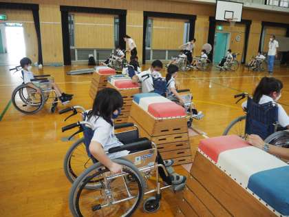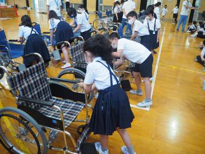 3年生では、総合的な学習の時間にリハビリテーションセンターの方々に来ていただき、車いすの体験学習をしました。