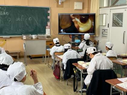 朝、学校に届けられたお餅は、PTAの方々が全児童分、袋に入れて準備をしてくださいました。また、今年度は、お餅のできる様子を撮影していただき、給食時間に視聴させていただきました。杵でついていくと餅米の粒がどんどんお餅になっていくことに驚き、美味しそうなつきたてのそのお餅を自分たちが受け取ることを心待ちにする声がたくさん聞かれました。