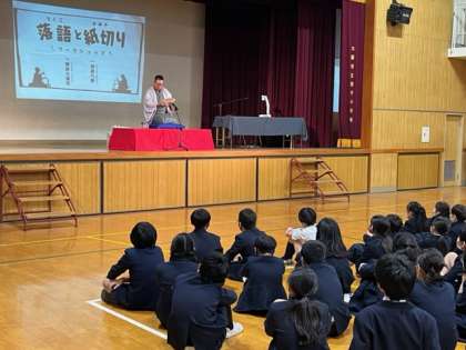 4〜6年生では、24日に行われる文化芸術事業「落語と紙切り」に向けたワークショップがありました。