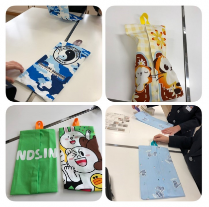 1月26日(木)6時間目にクラブ活動がありました。手作りクラフトクラブでは、ティッシュケースカバーを作りました。スティックボンドで布を貼っているので、ミシンなどは使わずに作ることができます。ティッシュの取り出し口は、マジックテープで開閉できるようにし、持ち手も付けました。余った布を再利用しているので、どの布を選ぶかで絵柄やできあがりがそれぞれ違います。児童は、自分で作った作品のできあがりを見ながらとても満足していました。