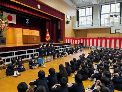 修了式では、児童代表が校長先生から修了証を受け取った後、代表児童が1年間頑張ったことを発表しました。漢字や計算、授業での発表やノートのとり方など、学習に関することもあれば、友だちとの関係、時間の使い方など生活に関することもあり、一人一人の頑張りがよく分かる発表となりました。それぞれに色々とあった1年間。どの子もまたひとまわり成長した姿で、締めくくることができました。