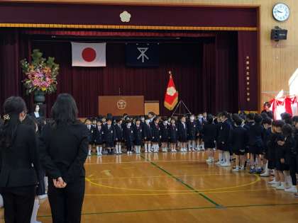 新たに着任した教職員の挨拶では、開平小学校の印象や得意なこと、これからやっていきたいことなどの紹介があり、児童は興味をもって聞いていました。新1年生との対面式では、お兄さん、お姉さんとしてかっこいい姿を見せようとはりきっていました。1年生も緊張しながらもうれしそうでした。これから、みんなで楽しく充実して過ごしていきたいです。