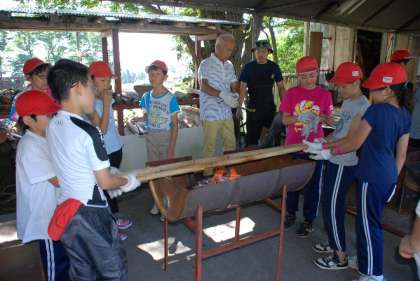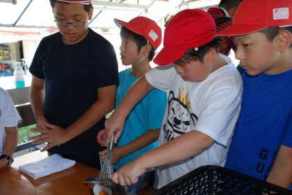 最終日の活動のバームクーヘン作りも今年度初めての試みです。なかなか思い通りにできないこともありましたが、グループで協力しながら楽しく取り組むことができました。