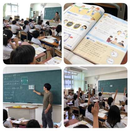 3年生は算数で、1分より短い時間について学習しました。1分より短い時間の単位を『秒』といい、1分は60秒のことであることを教室にある時計の秒針の動きを見ながら確認していました。その後、「1秒の長さを自分で感じながら30秒たったと思った時に手をあげましょう。」という担任の先生からの問題で、子ども達は『秒』という時間を体験しながらつかんでいました。
