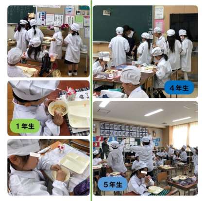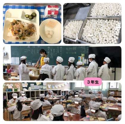 今日の給食に登場した豚丼と白玉だんごのきな粉がけはとても人気がありました。丼はご飯が食べやすかったようで、どのクラスもほぼ完食でした。3年生や4年生の教室をのぞいてみると、丼のおかわりに並ぶ列ができていました。1年生も早い時間に丼が入っていたお皿が空っぽになっている人が多かったです。白玉だんごもとても好評で、お椀についたきな粉をスプーンですくって最後まできれいに食べていました。5年生では、数袋ほど余っていたきな粉をめぐってのおかわりじゃんけん大会が行われていました。