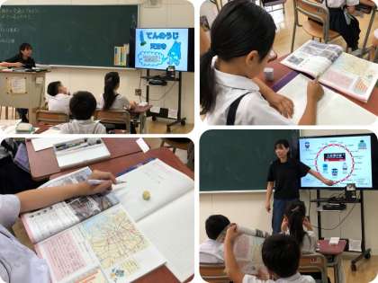 3年生は社会科で「大阪市の交通はどのように広がっているのだろう」という学習をしています。大阪市は環状線や他の路線、バス、ニュートラムなどがあり、交通がとても発達していること、人や物の往来が盛んなことを学び、自分たちが住んでいる大阪市のことを理解します。3年生は遠足で環状線1周をしているので、特に身近に感じ、よく覚えていると思いますが、環状線の各駅の名前が登場する『鉄腕アトム』の替え歌を歌いながら振り返っていました。
