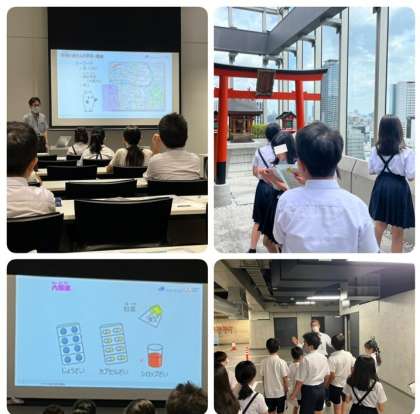 5年生は、20日(火)に校区の道修町にある製薬会社に社会見学に行きました。道修町は、日本の医薬品産業発祥の地といわれています。そんな「くすりの町」にある製薬会社の創業から現在までの歴史を紹介していただき、史料館やオフィスの見学もしました。歴史をお話していただいたことで、児童は自分たちが住んでいる地域のことを詳しく知ることができ、また、薬のあゆみや種類、体の中での働きなどについて、史料や展示物を見ながらわかりやすく学習することができました。