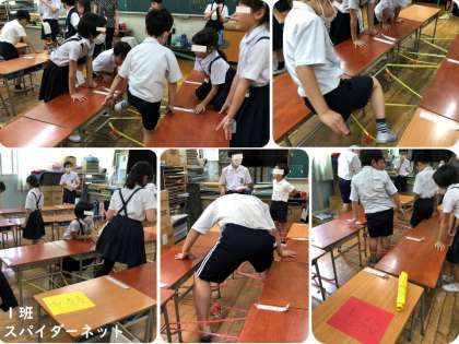 1班のスパイダーネットは、初級、中級、上級があり、中級や上級にはネットに鈴がついていました。鈴を鳴らさずに越えていきます。