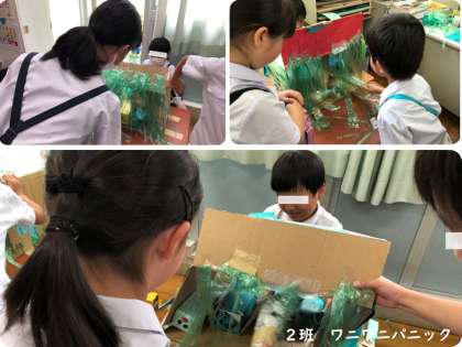 6月30日にみんなが楽しみにしていたわくわくフェスティバルが開催されました。はじめの会では、運営委員会の児童が司会やあいさつ、ルール説明などを行いました。また、多くの保護者の皆様になかよし班での児童の活動をご参観いただきました。フェスティバルのお店は14班あります。それぞれの様子をご紹介します。