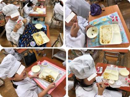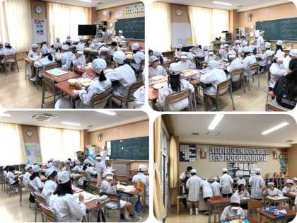 25日の始業式に引き続き、今日から2学期の給食がスタートしました。初日のメニューは、みんな大好きカレーライスです。給食調理員さんが50個のラッキーにんじんを作ってくださっていました。1年生の教室をのぞいてみると、給食の感想をたくさん聞かせてくれました。「おいしいからみんなのお皿からっぽだよ。」「毎日でもカレーライスが食べたい。」「給食のカレーライスは少し辛いけど、めっちゃおいしい。」「もうみんなおかわりをして2皿目の人も多いよ。」「ゼリーがすこし凍っててシャーベットみたい。」などです。他の学年を見ても、おかわりをしたり、友達と楽しく食べたり、久しぶりの給食をしっかりと味わっていました。給食室でも「今日のカレーライスがおいしかったです。」と大きな声であいさつをしていました。