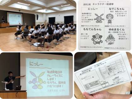 6年生は、中央区役所の方々にお越しいただき、選挙について学習しました。選挙の大切さ、18歳から選挙権があるので自分たちが住んでいる地域をどうしていきたいのか政治に関心をもってほしいなどのお話をしていただきました。また、選挙クイズに挑戦し、投票用紙がポリエステルでできていて、投票箱の中で開くようになっていること、投票所に一番最初に行った人は、投票箱に何も入っていないことを確認する役割があることなどを知りました。そしてその後は、模擬投票の「キャラクター総選挙」です。どのキャラクターに投票するのか、選挙の公約を聞いたり、選挙公報を見たりしながら考えました。