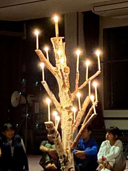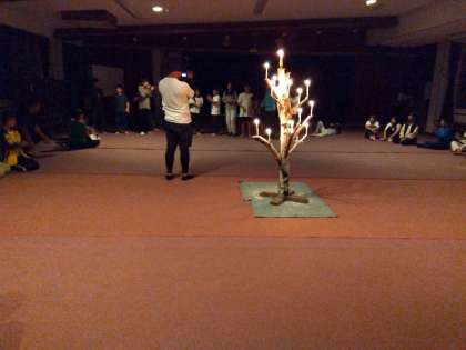 雨のため、キャンプファイヤーではなく、キャンドルサービスをしました。