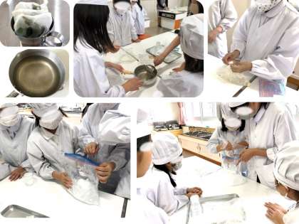 木曜日の6時間目にクラブ活動がありました。手作りクラフトクラブでは、ハーブのシャーベットの調理実習を行いました。ハーブは、開援隊の園芸班の方々が栽培してくださっているものです。数種類のハーブをお茶用パックに入れて煮出し、よく冷ましたものをビニール袋に入れます。保存袋の中に氷と塩を入れ、ビニール袋に入ったハーブティーをセットします。それを5分以上振り続けます。班の中で1人1分ずつなどと決めて、声を出して数えたり、時計を見たりしながら交代で振っていました。