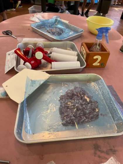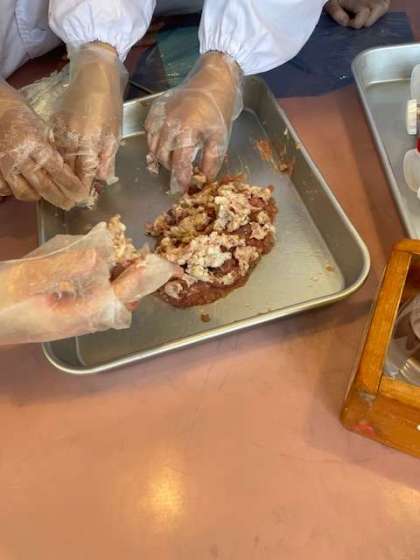 ソーセージの中身になる肉が出来上がりました。お好みのスパイスの量は各班それぞれです。