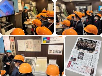 届け先の販売店ごとに新聞を仕分けして、トラックに積み込むための装置「リニソート」も見学しました。また、活版印刷についての展示を見たり、昔の印刷方法を実演していただいたりしたことで、新聞印刷の歴史についても詳しく知ることができました。現在の新聞は、デジタル化や高速化が進んだ中で印刷されていることがわかりました。児童はどの見学場所でも、気が付いたことやお話していただいたことなどをしっかりメモし、興味や関心をもって意欲的に学習していました。最後に、工場見学の記念品として見学記念新聞をいただきました。