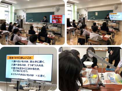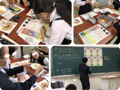 3年生は算数で、重さを数で表す方法を考え、重さの単位「g」とその表し方について学習しました。星やプレゼントの箱、くつ下の飾りがあり、天秤を使って何がどれだけ重いかを調べます。調べるために使うものは、色鉛筆や消しゴム、割りばし、おはじき、磁石の5種類です。色鉛筆〇本分など、いくつ分かで考えます。班で協力しながら、星やプレゼントの箱、くつ下の飾りについて何のいくつ分かを全てはかり、ワークシートと発表ボードに結果を記入して、全体で共有しました。児童は、各班の同じところや違うところに着目し、色鉛筆や消しゴム、割りばしなどは、大きさや形がバラバラで調べにくかったこと、磁石は重くて比べられなかったこと、おはじきが一番正確にはかることができたことなどを発表しました。そして、重さは同じ大きさのものいくつ分かで表して比べることができるとわかりました。次回は、重さの単位「g」を知り、1gである1円玉いくつ分かで3つの飾りの重さを表します。今後はさらに、実際のはかりを使っての測定方法や「kg」「t」についても学習します。