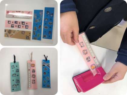 木曜日の6時間目にクラブ活動がありました。手作りクラフトクラブでは、マスキングテープを使ったしおり作りをしました。様々な絵が印刷されたマスキングテープを必要な部分だけ切って台紙に貼り、アルファベットやカタカナのはんこで名前や言葉を押し、ラミネートをします。ものさしの絵を貼って、しおりとものさしの両方の役割をもつようにしている児童もいました。ラミネートをした後に穴をあけ、最後にリボンやひもを通してできあがりです。短時間でできるので、自分の分と家族へのプレゼントも作っていました。それぞれの児童が工夫をして、とてもかわいらしい、かっこいい、素敵なしおりを作ることができました。