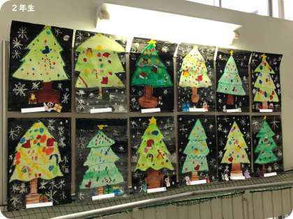 東校舎の階段の踊り場に1年生と2年生の図画工作の作品が掲示されています。明日から個人懇談が始まります。学校にお越しの際に、教室に掲示されているものとあわせて、ぜひご覧ください。
