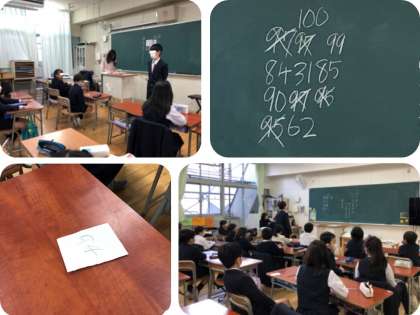 今朝は児童集会がありました。体育館で全学年が集まって一緒にゲームやクイズをするのではなく、集会委員会の児童が各教室に1人ずつやってきて、ゲームをしました。小さい紙が配られ、そこに1〜100までの数字を1つだけ書きます。1人ずつどの数字を書いたのか発表していき、他の誰とも重ならず、しかも一番大きな数字を書いた人が勝ちです。書いた数字を発表し、黒板に書かれる度に「あー、よかった!!」「重なっちゃった!!」などの声が聞かれ、とても盛り上がっていました。2回戦をしているクラスもありました。勝つために、なるべく大きい数字を書くようにチャレンジしている攻めの姿勢が見られました。