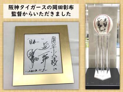 阪神タイガースの岡田彰布監督からサイン入り色紙とボールをいただきました。岡田監督は、愛日小学校の卒業生です。愛日小学校と集英小学校の歴史を継承している本校の児童のために、当時の同級生がサインをお願いしてくださり、届けてくださいました。色紙には、阪神タイガースがオリックスとの日本シリーズで38年ぶりに日本一になった日『2023年11月5日』が記されていました。また、岡田監督の座右の銘である『道一筋』も書いてくださっていました。そして、プロ野球で使われる公式球にもサインをしてくださいました。児童からは、「すごい!!本物や。」「パレードを見に行ったよ。」「岡田監督はうちのおじいちゃんと同じ時に愛日小学校に通ってたんやって。」などの声が聞かれました。このようなうれしいプレゼントをいただき、本校の地域や本校の児童とのつながりを強く感じることができました。岡田監督、同級生の皆様、本当にありがとうございました。