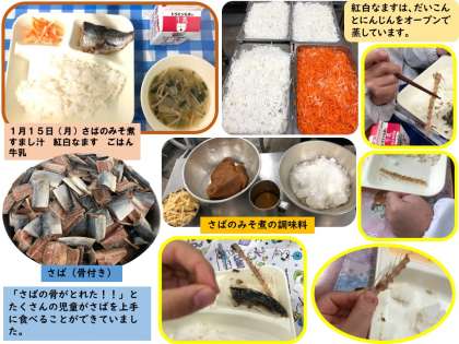 15日(月)にさばのみそ煮が登場しました。とても骨が多く、今までは「骨があるから苦手!!」と残食が多いメニューでした。今回は、全学年で魚の骨の上手なとり方について取り組みました。教室をのぞいてみると、「こんなに大きな骨がとれたよ。」「見て見て!私もとれた。」「ぼくのさばにもめっちゃ大きな骨があった。」「小骨をとるのが難しいわ!!」など、一人一人が骨を上手にとって最後までさばをしっかり食べようとがんばっていました。給食室に返却された食缶の中は骨ばかりで、さばの身はほとんど残っていませんでした。これからも、家庭と学校の両方で、魚の上手な食べ方を練習していくことの大切さを感じました。