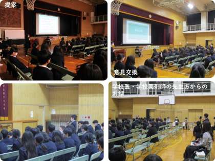 意見交換では、「感染症が流行しているので、手洗い・うがいを100%にできたらいいと思う。」「適度な運動、野菜やたんぱく質の多い食べ物などをバランスよく食べることが大事!!」「曲がり角が危険だとわかったので、注意して通りたい。」「けがが起こる原因、後先のことを考えたらけがもなくなるのでは?」「一人一人が改めて安全について考えてみることが大事で、意識することを継続できる開平小でいたい。」などの意見が出ました。