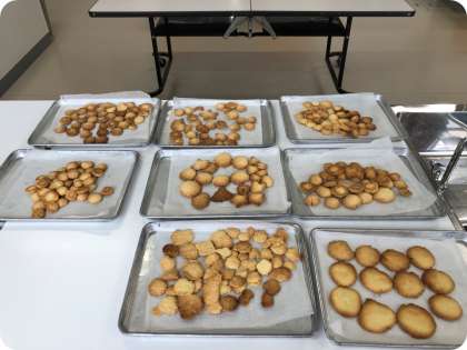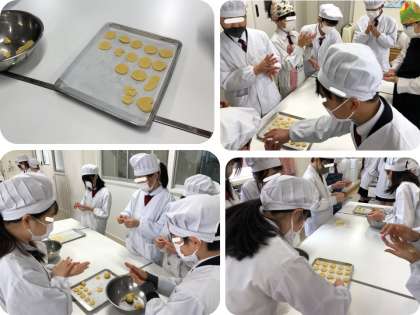 上手に形ができあがると、「めっちゃうまいやん!!」と友達どうしほめ合っていました。形を作る時は黙々と集中しすぎて、家庭科室が静かになっていました。オーブンに入れて、20分程度焼きました。焼き上がる途中で、クッキーの甘い香りが学校中に広がっていました。みんなで均等に分けて、いよいよ茶話会です。茶話会が始まって10分もしないうちに、6年生のほとんどが食べ終わってしまいました。自分たちで作ったクッキーの味はやっぱり最高だったようです。楽しい茶話会と手作りのクッキーで、思い出深い1日になったことと思います。