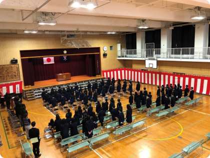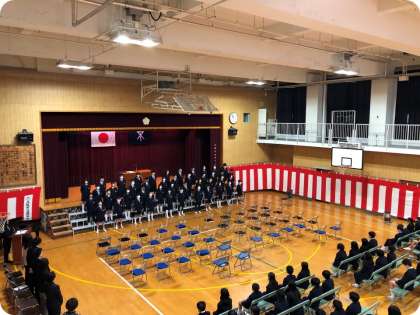 本日、卒業式の予行を行いました。入場や卒業証書授与、巣立ちの詩など、本番と同じ流れで進行し、最後まで執り行うことができました。6年生による合唱「正解」「ここにいる幸せ」も、在校生代表の5年生による合唱「春風の中に」も気持ちのこもったすばらしいものでした。いよいよ本当に卒業の日まであと少しであることを実感しました。