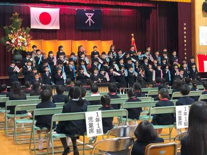 2年生によるお迎えの言葉では、入学してからの学校行事や学習、給食などについて伝えられました。また、「はじめまして」の合唱と「リズムにのって」の合奏がありました。きれいな歌声とすばらしい演奏に2年生の成長を感じました。