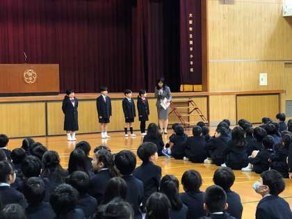 新しく着任した教職員のあいさつでは、「きれいな学校だと思いました。」「歌声がきれいですね。」「話している人の目を見て話を聞くことができてすばらしいです。」など、本校の児童の印象についてお話がありました。